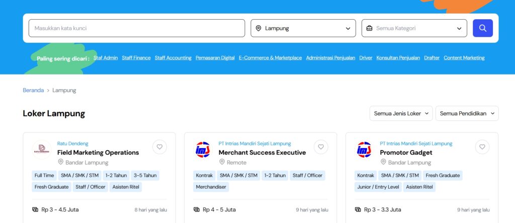 Glints (glints.com/id/job-location/indonesia/lampung/bandar-lampung)