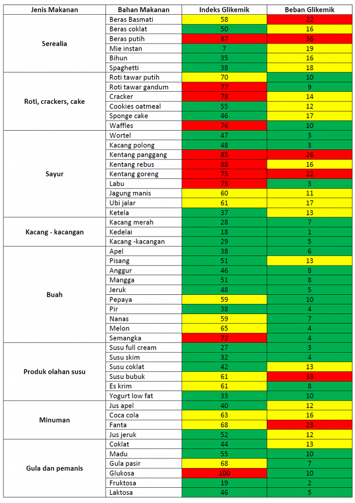 IG adalah ukuran seberapa cepat karbohidrat dalam makanan meningkatkan kadar gula darah setelah dikonsumsi. Makanan dengan IG rendah (≤55) menyebabkan kenaikan gula darah yang lambat dan stabil, sedangkan makanan dengan IG tinggi (≥70) memicu lonjakan gula darah yang cepat. Dalam pengelolaan diabetes, pemilihan makanan dengan IG rendah sangat dianjurkan untuk mengurangi fluktuasi glukosa darah dan meningkatkan kontrol metabolik. Contoh makanan dengan IG rendah adalah sayuran, buah-buahan tertentu, kacang-kacangan, dan biji-bijian utuh. Berikut adalah tabel indeks Glikemik dari blog Ahligizi