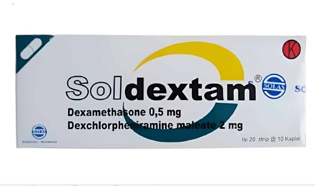Soldextam Tablet adalah obat yang mengandung kombinasi bahan aktif seperti dexchlorpheniramine maleate (antihistamin), deksametason (kortikosteroid), dan phenylpropanolamine (dekongestan). Ketiga komponen ini bekerja sinergis untuk meredakan reaksi alergi, mengurangi inflamasi, dan meredakan pembengkakan saluran pernapasan yang diakibatkan oleh berbagai kondisi alergi dan inflamasi.